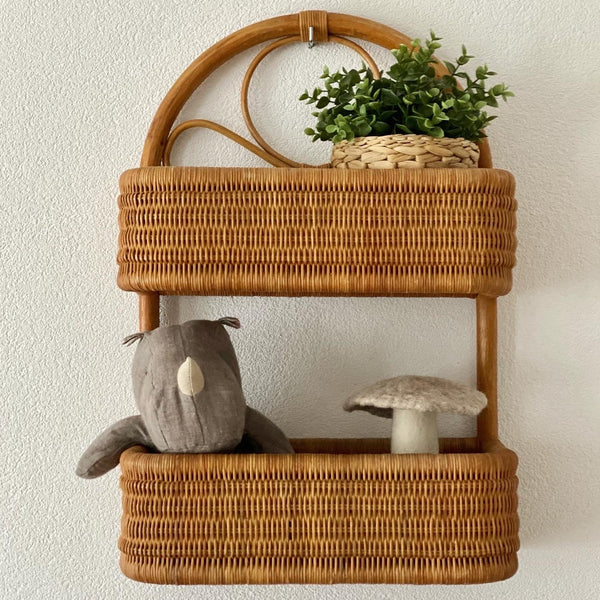Etagère murale osier et bambou