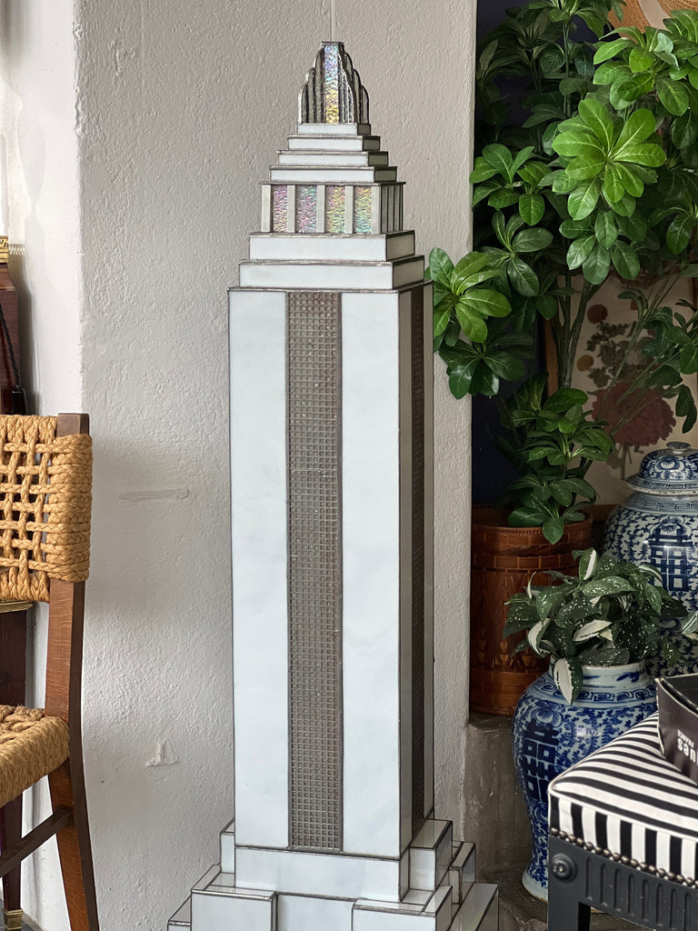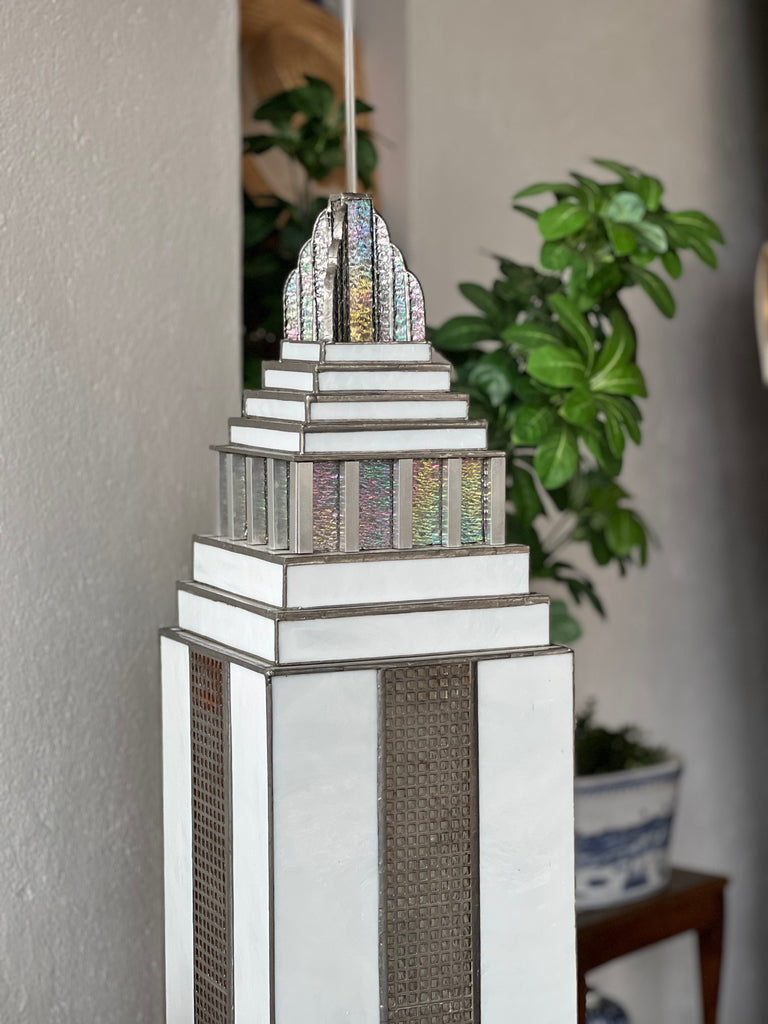 Tout en verre et étain, l’artiste a créé une pièce unique, atypique, de très belle qualité. Même l’antenne est en verre soufflé.