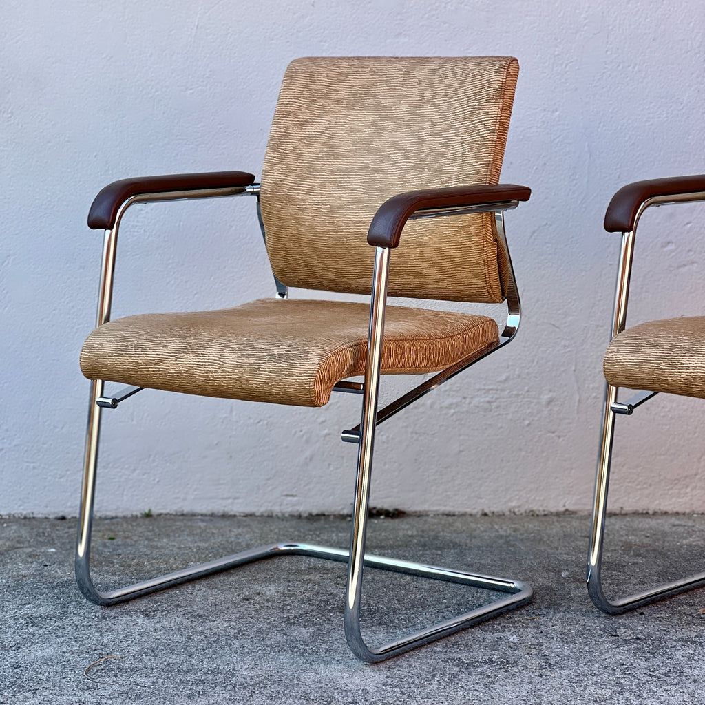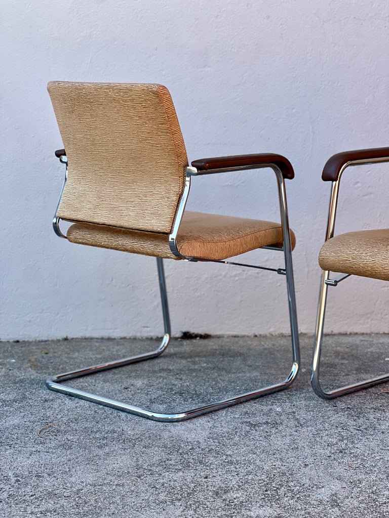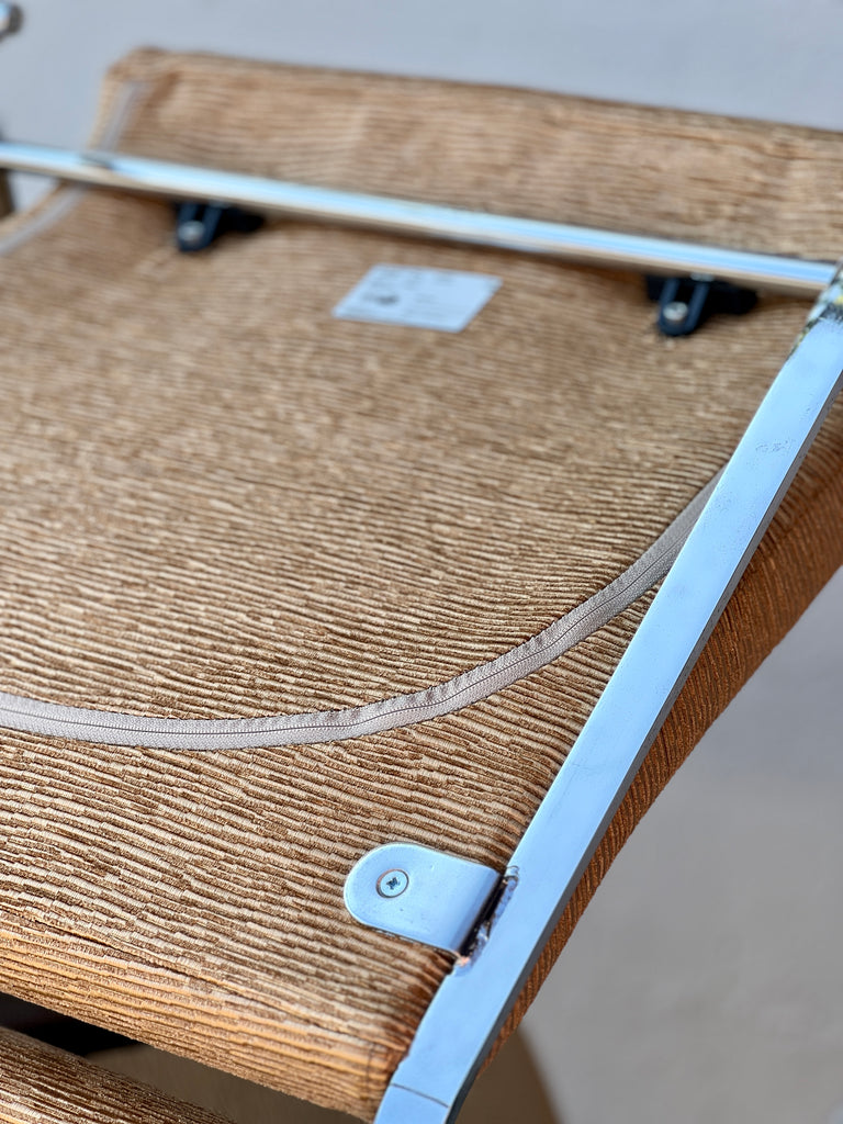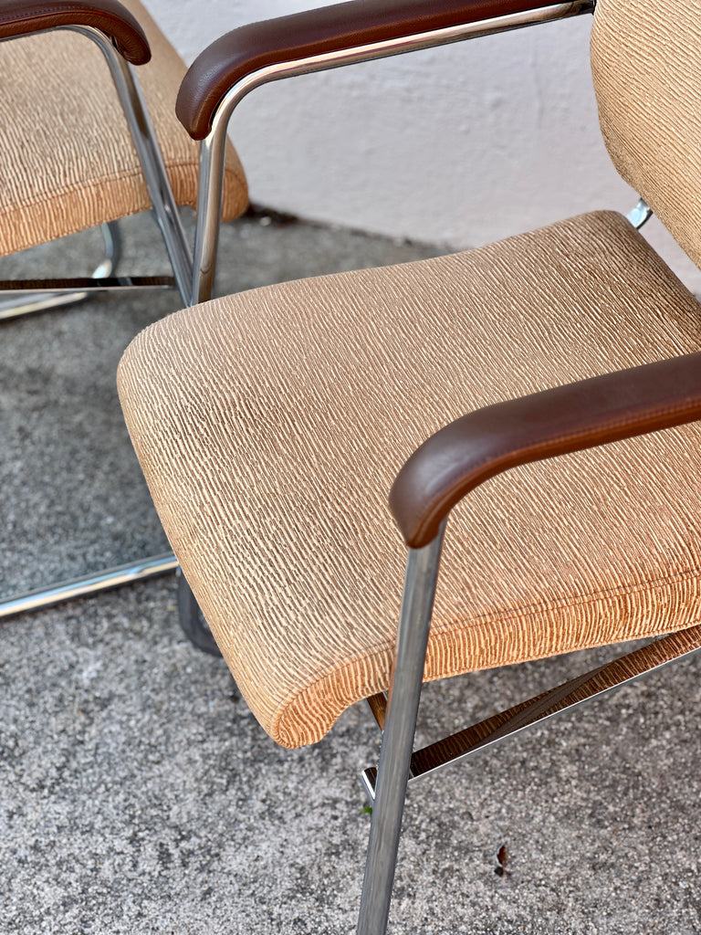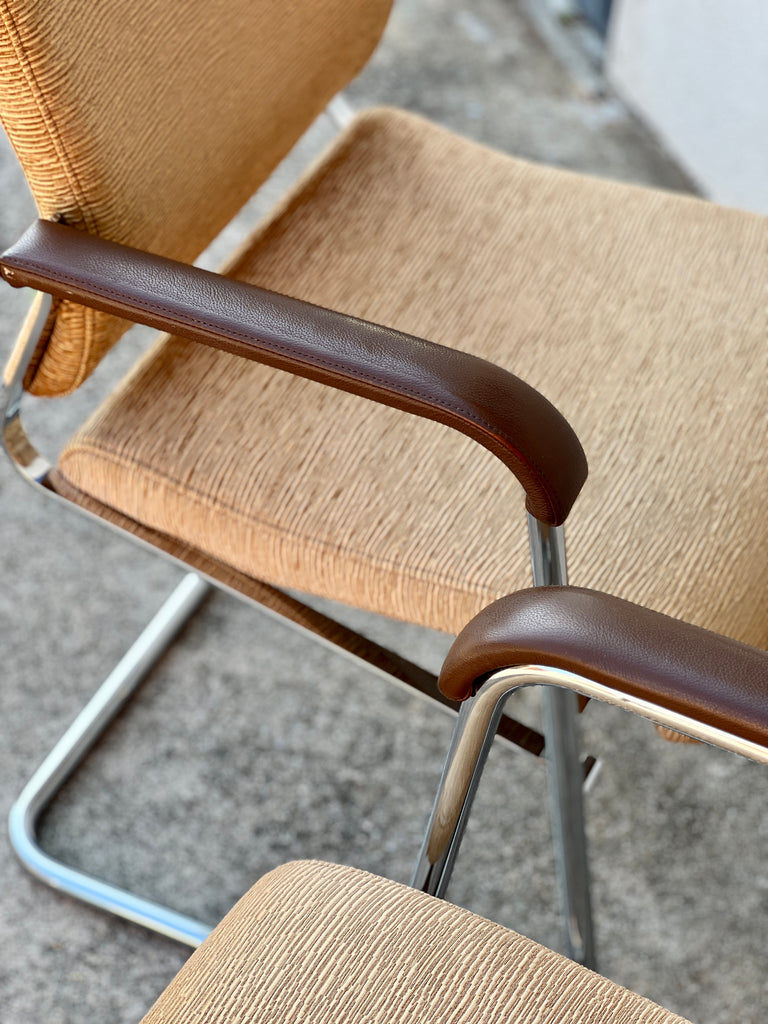 Accoudoirs en cuir, structure métal chromé et revêtement en tissu beige, super état !