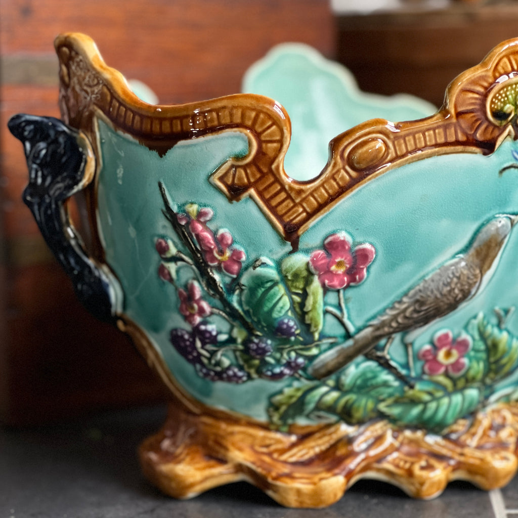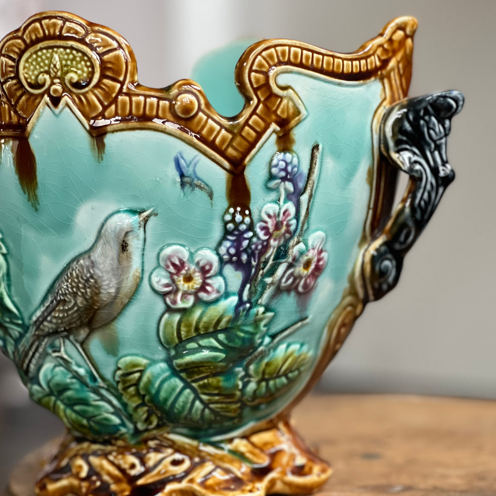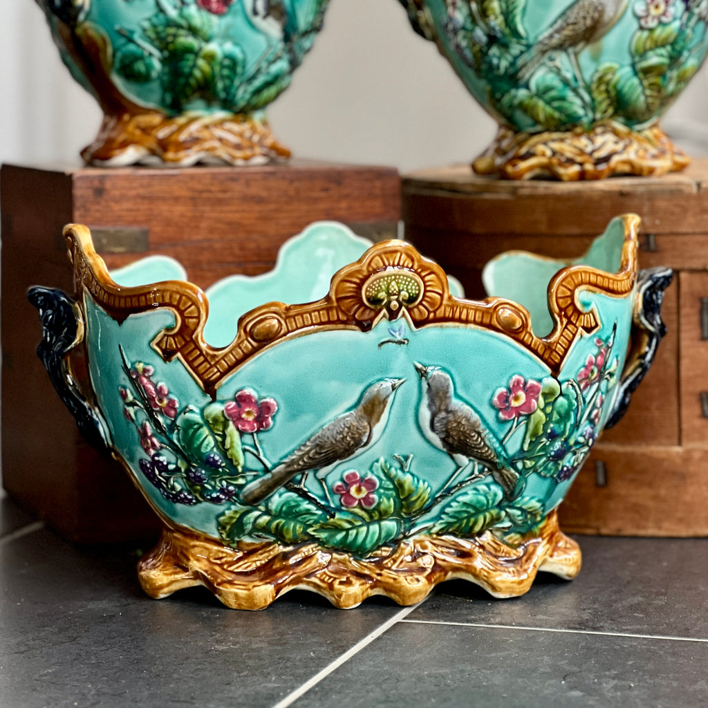 Gros coup de coeur pour ces 3 barbotines aux oiseaux sur fond turquoise ! 🔥 Onnaing, très bel état, forme très original !