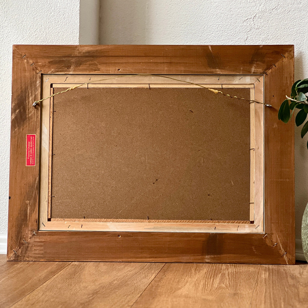 L’encadrement à la feuille d’or et patine verte, réalisé à Genève est en parfait état et sublime parfaitement le tableau.